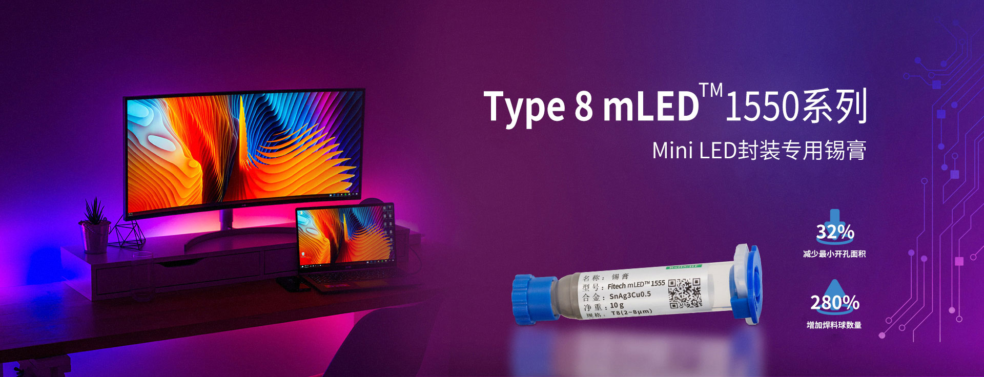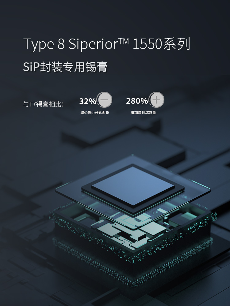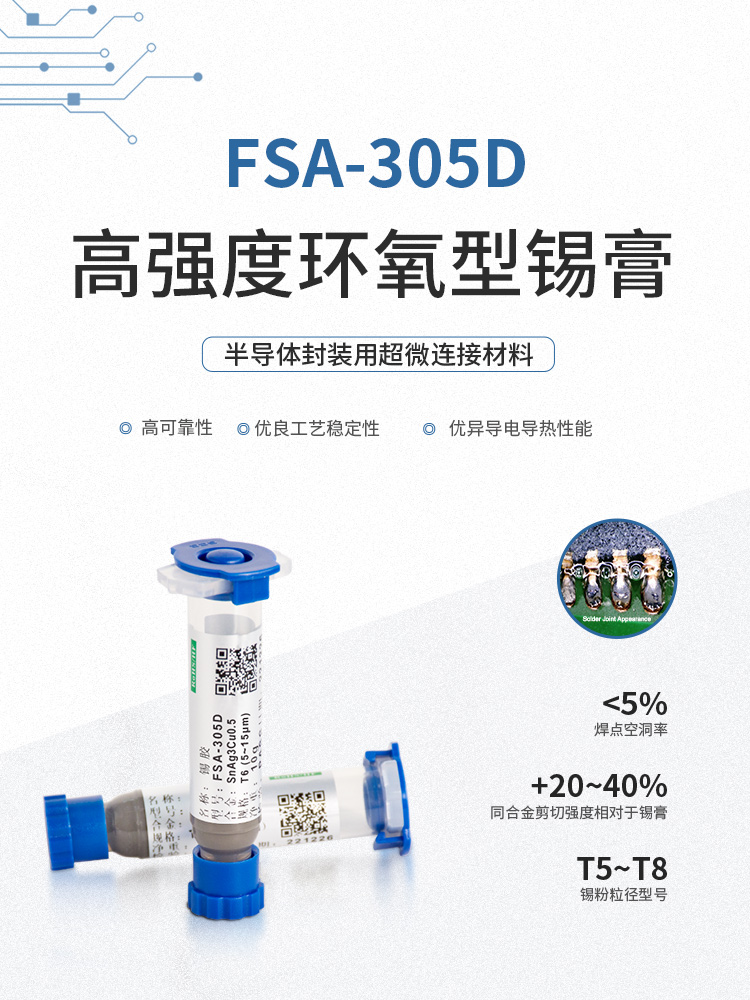 環氧樹脂錫膏,焊點加固,絕緣性加強,適用微間距,工藝簡化提升效率,包括規模商用的 6號粉、7號粉、8號粉,以及尖端應用9號和10號粉